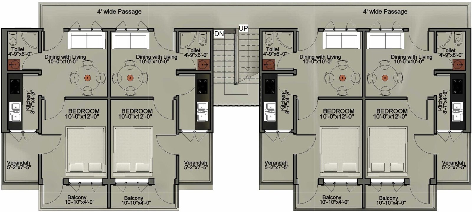 Ground floor plan | Carpet Area-398 sqft. | Buildup Area-469.75 sqft. 4' wide Passage